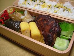 キュウリの梅昆布茶和え ハンバーグ 玉子焼き ナスとちくわのピリ辛煮 ピーマンの炒め物 バターコーン のりたまご飯