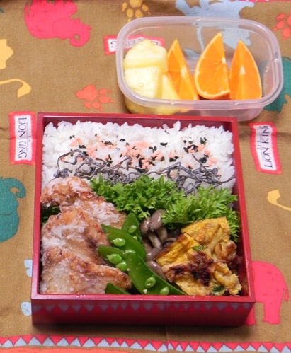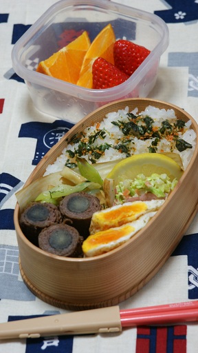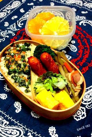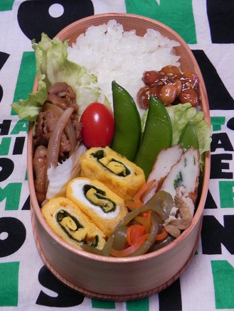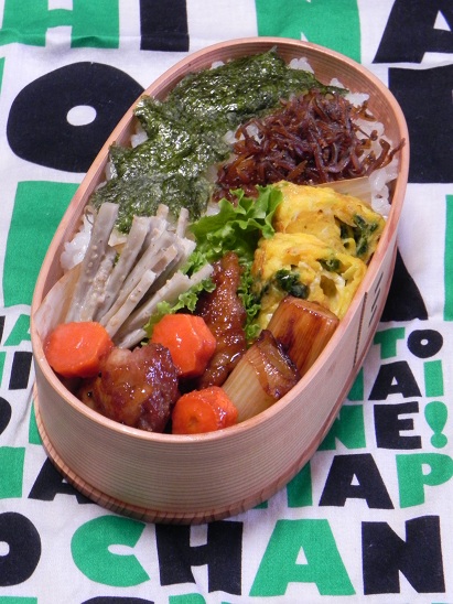 鶏とねぎの照り焼きネギと干し海老とあおさ入り玉子焼き人参のグラッセごぼうサラダいかなごのくぎ煮海苔べん