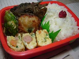 いろいろ玉子 揚げしゅうまい 鯵の大葉巻き 牛肉とごぼうのゴマ炒り 小梅ごはん GWも終わっちまった。ふぇ~ん
