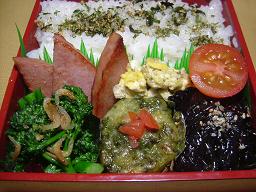 なすの揚げびたし バジルチーズの焼きポテト ブロッコリーのオイスターソース炒め 炒り玉子 ハム ミニトマト 海苔胡麻ごはん もう2月だって早い