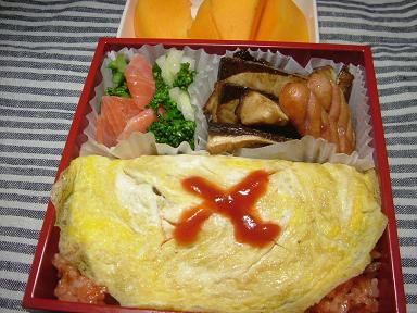 オムライス ウィンナー 生椎茸の焼きびたし ぶりの照り焼き ブロッコリーとスモークサーモンのマリネ 柿