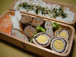 竜眼巻き 野菜さつま揚げ 八幡巻き ちぎり 紅白なます のりごまご飯